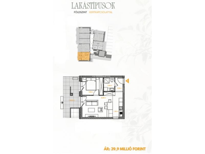 A 3 szintes lakóépület földszintjén, illetve első és második emeletén további lakások helyezkednek el, melyek 29, 30, 39, 40 és 46 m2 alapterületűek.