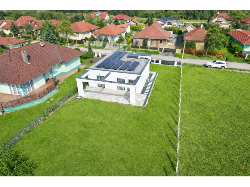A modern, masszív szerkezetű otthon letisztult építészeti megoldásokkal, átgondolt elrendezéssel és kiemelkedő energiahatékonysággal (AA++ energetikai besorolás) rendelkezik.