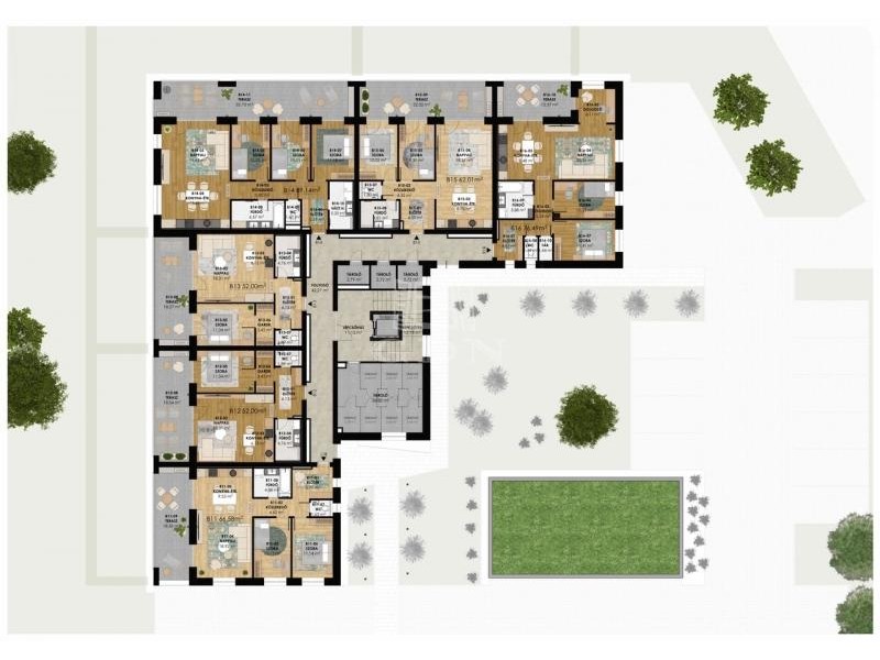 Modern megjelenésű, értékálló, kényelmes és élhető lakóparkban valamint az épületekhez kapcsolódó egyedi lakókörnyezetben szeretne élni? Hamarosan megvalósulhat az álma. A Gyöngyös-patak partján belváros közeli prémium lakások épülnek 20 000 m2-es területen, több ütemben. A tervezés során a funkció, a környezettudatosság és a kényelem voltak a legfontosabb tervezési szempontok. Így különösen az épületek szellős elhelyezése, a lakások kedvező tájolása, az épületek körül a maximális zöldterület és a megfelelő garázs szám biztosítása, a színvonalas közösségi funkciók kialakítása. A lakások értékállóságát és kényelmét az átgondolt tervezés, a minőségi anyagok használata, a nagy méretű, intim teraszok, a lift, a megújuló energia, egyedi és közös tárolók, fedett beállók, garázsok biztosítják. Az alkalmazott szerkezetek megfelelnek a ma érvényes “közel nulla energiaigényű épületek” követelményeinek. Az épületek előtti sétányok díszkivilágítást kapnak mozgás- és alkonykapcsolás vezérlésével. A sétányokról különböző típusú gépkocsi beállóhelyek – felszíni fedett, és normál parkolók ill. garázsok - közelíthetők meg. Egyes parkolók között beruházói döntés szerinti helyen és műszaki kialakítással, elektromos töltőpont csatlakozási lehetőség biztosítható. A közös területek alkalmasak játékra, pihenésre, a földszinti lakások előtti kijelölt zöldterület saját használata mellett. A ház kaputelefon rendszerrel lesz felszerelve. A lépcsőházban és egyéb közös terekben légterenként időkapcsolós világítás lesz kiépítve. A mai korszerű követelményeknek, az épületek hő és hangszigetelése a vonatkozó szabályoknak maximálisan megfelel. A külső hőszigetelés vastagsága 16-20 cm. Az ablakok 3 rétegű üvegezéssel kiváló hőszigetelésű nyílászárók. A lakások padlófűtéssel rendelkeznek, mely a szabadabb belsőépítészeti kialakításoknak ad lehetőséget. A tervek szerint a központi gépészet távfelügyeleti rendszerrel ellátott, távfűtés, így a karbantartás és üzemeltetés során ez gyors beavatkozást és üzembiztonságot eredményez. A fogyasztás egyedi mérőkkel mért, az elszámolást a közös képviselő végzi. A megújuló energia tervek szerint a megfelelő energetikai szabályok alapján kerül telepítésre pl. napelemrendszer. (Kiviteli terv során változhat: kondenzációs gázkazán és/vagy hőszivattyú). Belsőépítész által tervezett lakások, nagy teraszokkal kapcsolódnak a természethez. Befektetőknek, nagy családoknak alkalmas lakások kerülnek kialakításra. A kisebb lakások 52 m2, 62 m2, a nagyobb lakások 67 m2, 76 m2 és 89 m2 nagyságúak lesznek. 12-33 m2 fedett intim teraszok kerülnek kialakításra. Aktuális, bevezető ajánlatban az 1db felszíni parkolót, vízlágyító rendszert, klíma előkészítést ajándékba adja a beruházó. A lakásokhoz tárolók, garázsok vásárolhatók. Kimerítőbb tájékoztatást személyesen. A hírdetésben szereplő lakás 2.emelet 16.