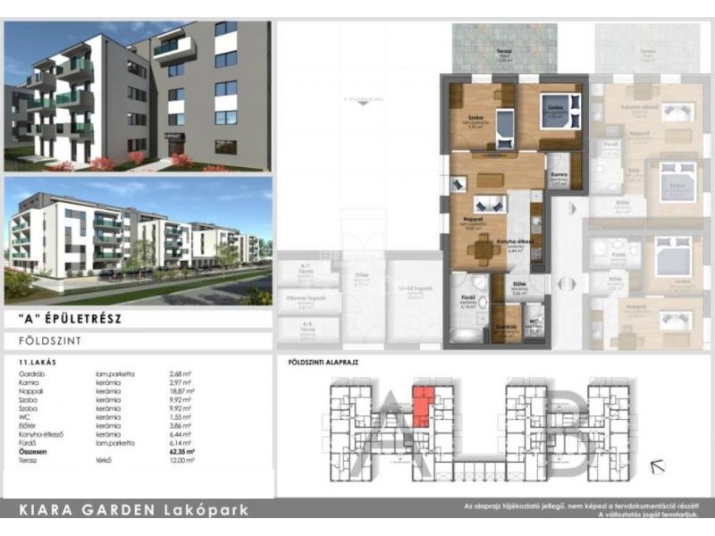 Szombathely zöldövezeti, dinamikusan fejlődő városrészén, energiahatékony, modern lakások várják új tulajdonosaikat. Kiara Garden lakóparkban kettő ütemben épülő , minden igényt kielégítő lakásai nappali+1 szobával, nappali+2 szobával, nappali+ 3 szobával fognak rendelkezni. Az ingatlanokhoz nagy erkélyek teraszok is tartoznak. A legnagyobb lakás dupla komfortos kialakítású lesz. Egyedülállóktól a nagy családosokig megfelelő otthona lehet bárkinek. A belváros közeli ingatlanok lehetőséget biztosítanak egyedi belső kialakításokra. A lakás gazdaságos fűtéséről és melegvíz ellátásáról távhő szolgáltató gondoskodik. A fűtésrendszer egyedileg szabályozható, saját hőmennyiség mérővel ellátott. A hőleadás padlófűtésen keresztül történik. Az ingatlanok ideális hőmérsékletét, a nappaliban elhelyezett split klíma biztosítja. Az épületben kellő számú zárható tároló kerül kialakításra, külön bejárattal. ( 2.96 m2-es tároló 1 790 000 Ft ) Természetesen vannak nagyobb tárolók is. A lakótömbök udvarán található felszíni parkolók ára 1 490 000 Ft. Bővebb tájékoztatásért kérem vegye fel velem a kapcsolatot.