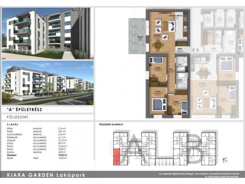 Szombathely zöldövezeti, dinamikusan fejlődő városrészén, energiahatékony, modern lakások várják új tulajdonosaikat. Kiara Garden lakóparkban kettő ütemben épülő , minden igényt kielégítő lakásai nappali+1 szobával, nappali+2 szobával, nappali+ 3 szobával fognak rendelkezni. Az ingatlanokhoz nagy erkélyek teraszok is tartoznak. A legnagyobb lakás dupla komfortos kialakítású lesz. Egyedülállóktól a nagy családosokig megfelelő otthona lehet bárkinek. A belváros közeli ingatlanok lehetőséget biztosítanak egyedi belső kialakításokra. A lakás gazdaságos fűtéséről és melegvíz ellátásáról távhő szolgáltató gondoskodik. A fűtésrendszer egyedileg szabályozható, saját hőmennyiség mérővel ellátott. A hőleadás padlófűtésen keresztül történik. Az ingatlanok ideális hőmérsékletét, a nappaliban elhelyezett split klíma biztosítja. Az épületben kellő számú zárható tároló kerül kialakításra, külön bejárattal. ( 2.96 m2-es tároló 1 790 000 Ft ) Természetesen vannak nagyobb tárolók is. A lakótömbök udvarán található felszíni parkolók ára 1 490 000 Ft. Bővebb tájékoztatásért kérem vegye fel velem a kapcsolatot.