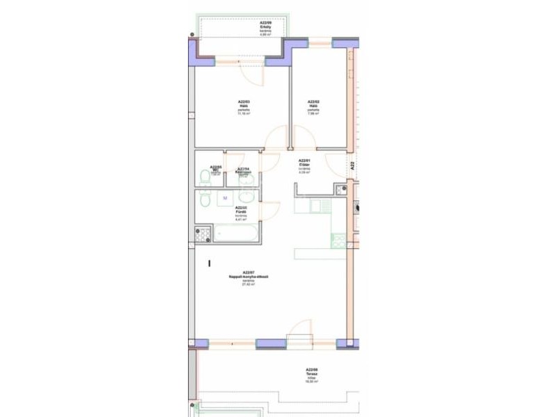 Az ingatlan gépesített konyhával (hűtőszekrény, mosógatógép, indukciós főzőlap, villanytűzhely, páraelszívó), két hálószobával + nappalival + 2 db nagy terasszal rendelkezik, összesen 70 m2.