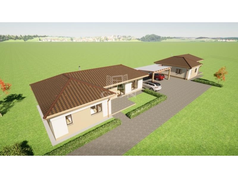 Dinamikusan fejlődő településen Vasszécsenyben, nyugodt környéken osztott telken családiházak eladók. A jól átgondolt tervezésnek köszönhetően a házak fedett gépkocsibeállókkal érintkeznek. Az ingatlanok magas műszaki tartalommal épülnek. A sávalapra épülő lakóegységek Porotherm téglából készülnek, vakolt felületekkel. A tető héjazata Bramac Római Novo cseréppel történik. Három rétegű nyílászárói fokozottan hang-és hőszigetreltek, motoros aluredőnyökkel felszereltek. Homlokzatára Austrotherm EPS hőszigetelő rendszer kerül, 15 cm vastagsággal. Födémere 30 cm szigetelést terveztek. Fűtéséről, meleg vízellátásáról kondenzációs gázkazán gondoskodik, padlófűtéses hőleadással. Az ingatlan nappaliában hűtő-fűtő klíma gondoskodik a kellemes hőmérsékletről. Elektromos ellátottsága 3x25 Amperrel történik. Az ingatlanokat vízlágyítókkal is felszerelik. A házak 86 m2 nagyságúak, 15 m2 terasszal. Három hálószoba + nappali kialakításúak. Az utcafronti házhoz 330 m2 saját kert tartozik. A hátsó ingatlan 755 m2-es telekkel rendelkezik. Térkövezés bizonyos hányada, tereprendezés a vételár részét képezi. A Beruházó rugalmasságának köszönhetően belső módosításokra van lehetőség.