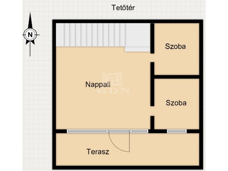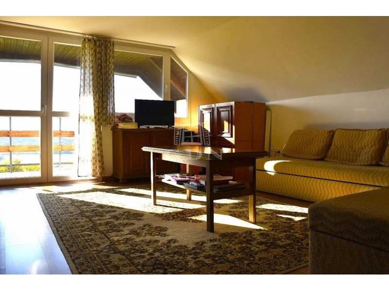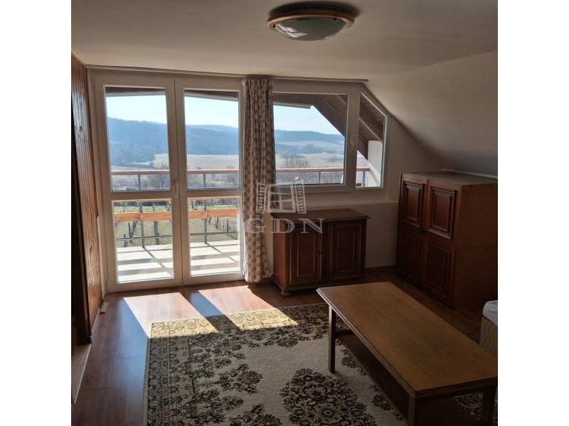 - A felső szinten egy otthonos, napfényes, tágas nappaliból nyílik az erkély, ahonnan csodálatos kilátás tárul elénk. Itt még két félszoba kapott helyett.