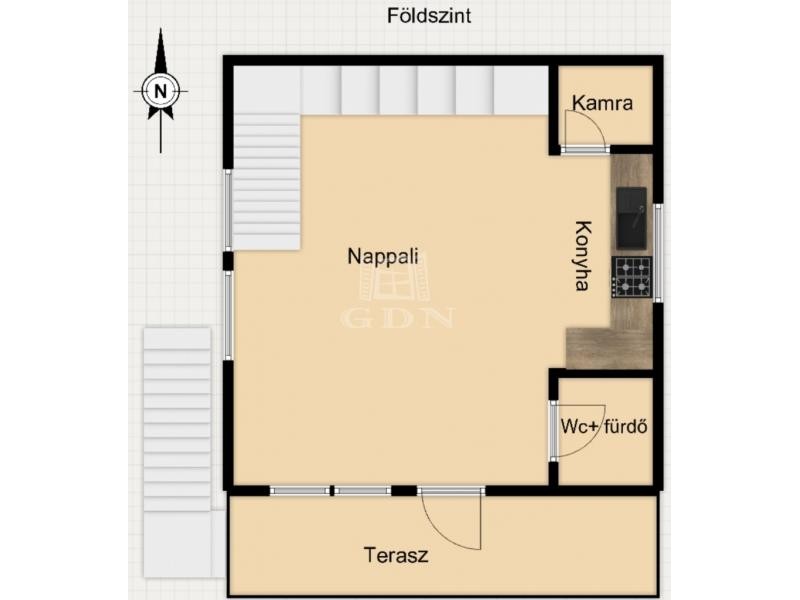 - A középső szinten egy tágas fogadótér vár minket étkezővel, konyhával, kamrával és egy fürdőszobával. A bejárattal szemben egy jól működő, néhány éves kandalló tereli magára a figyelmet.