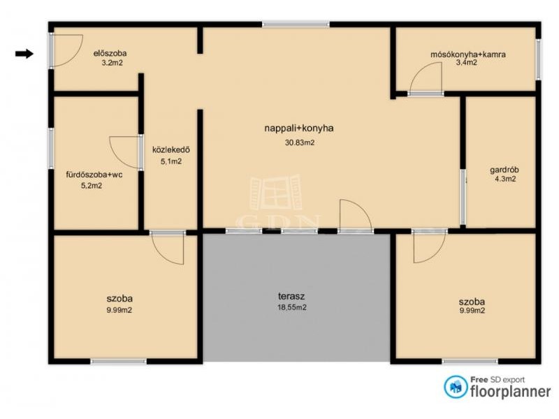 - Tágas nappali–étkező–konyha egybenyíló térrel