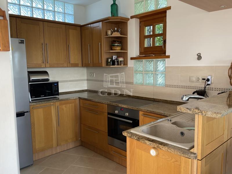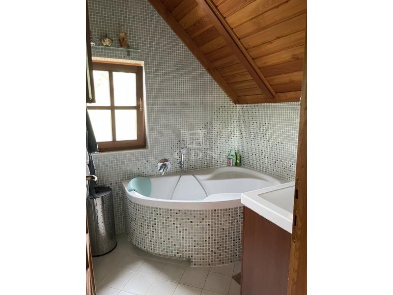 Kiegészítők: cserépkályha, infraszauna, félköríves terasz (25 m²), melynek burkolata felújításra szorul, így lehetőséget biztosítva a további egyéni igények kialakítására.