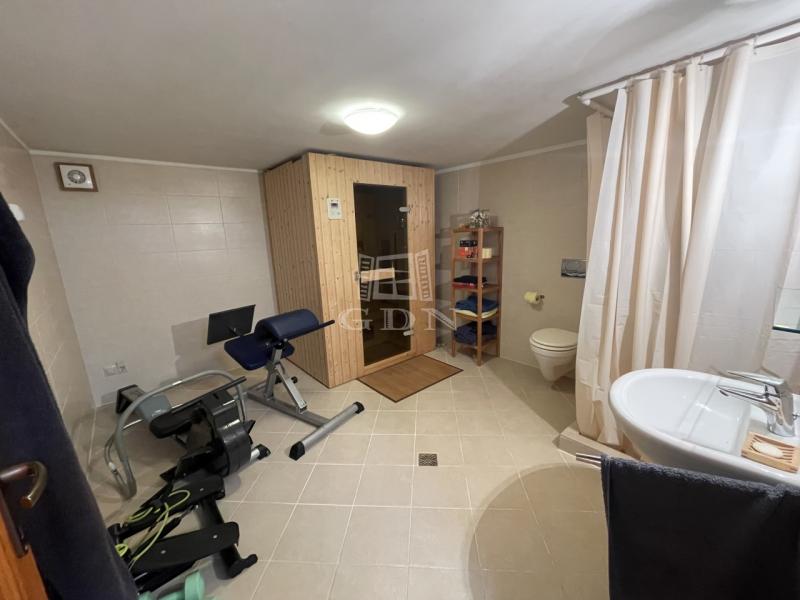 Teljes alápincézés: tárolóhelyiség, infraszaunás, padlófűtéses fürdőhelyiség, gépészeti helyiség