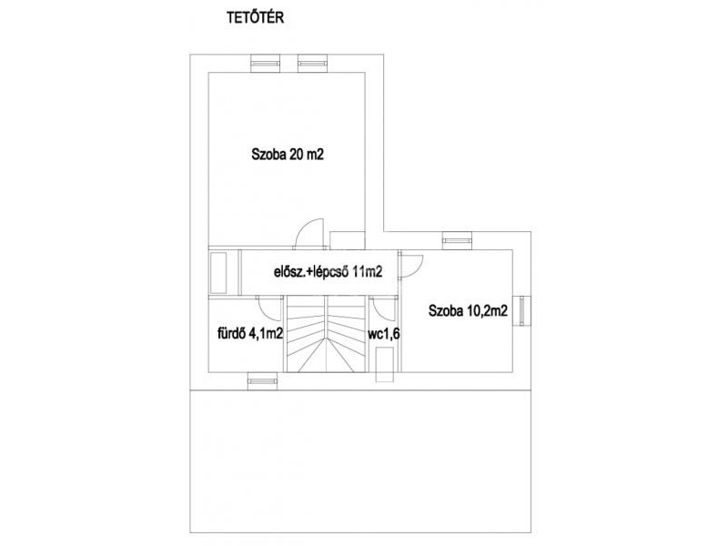 Emelet: 2 hálószoba (20 és 10,2 m²) split klímákkal, sarokkádas fürdő (4,1 m²), külön WC (1,6 m²), tároló