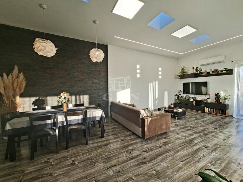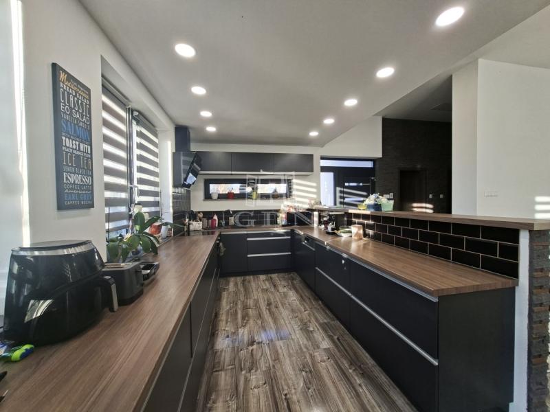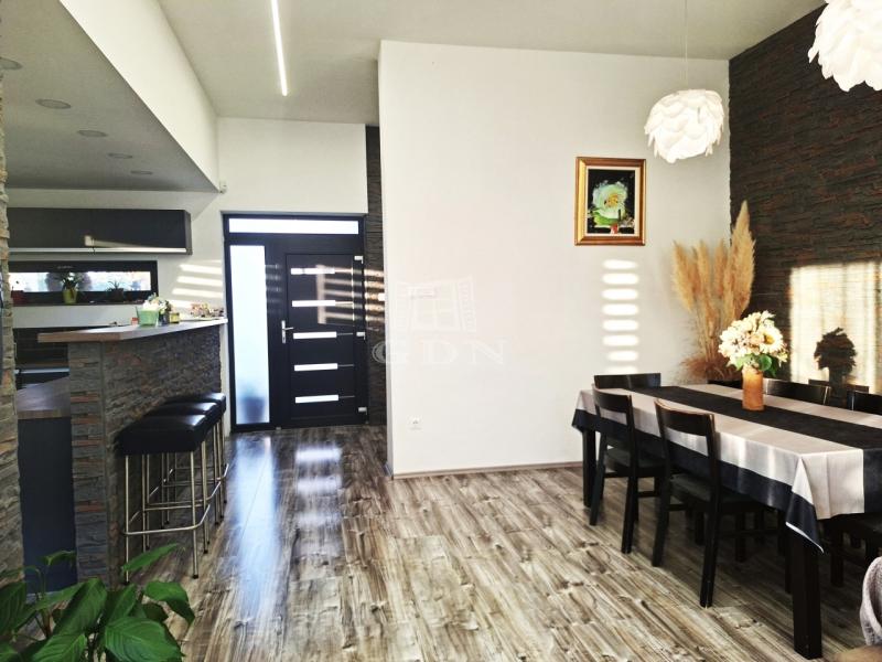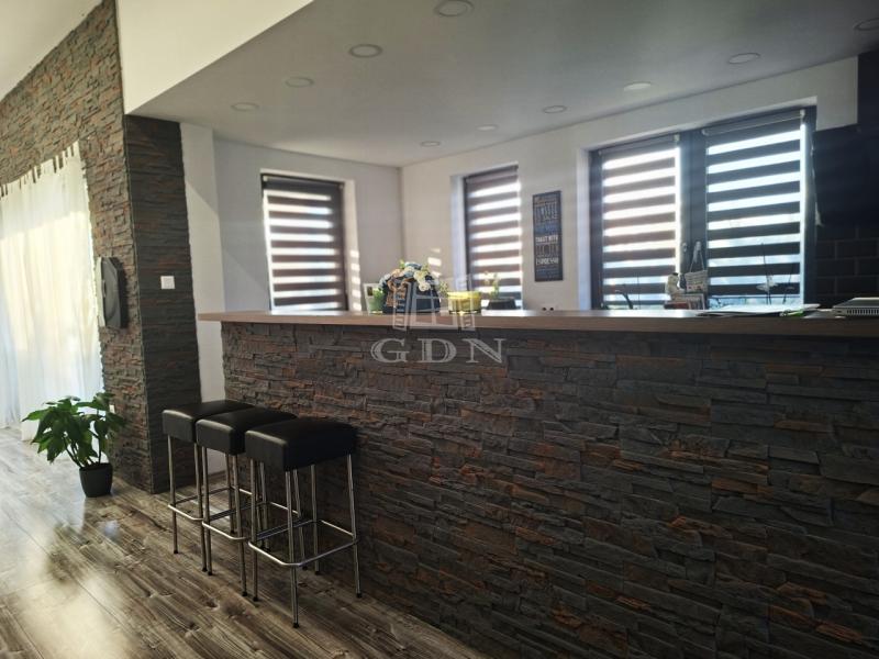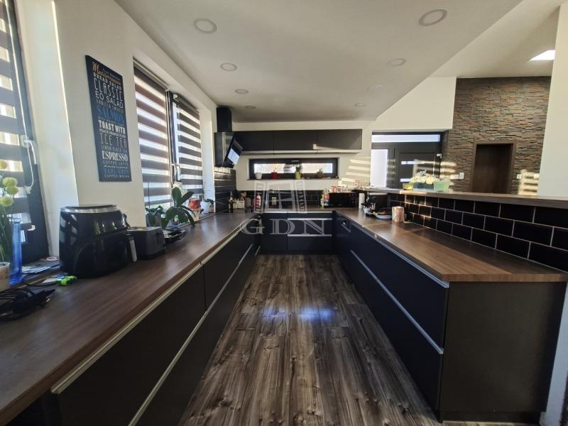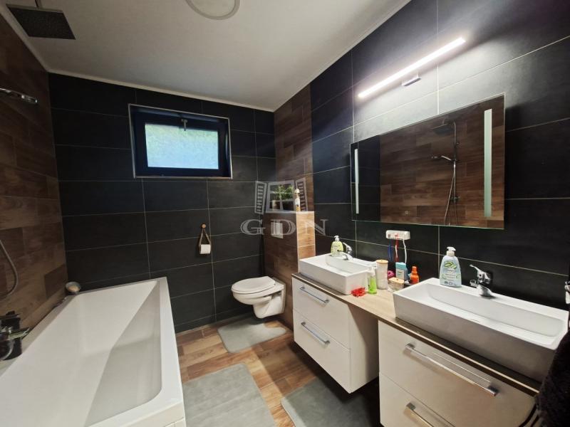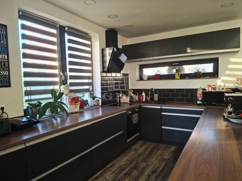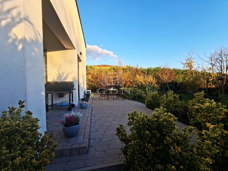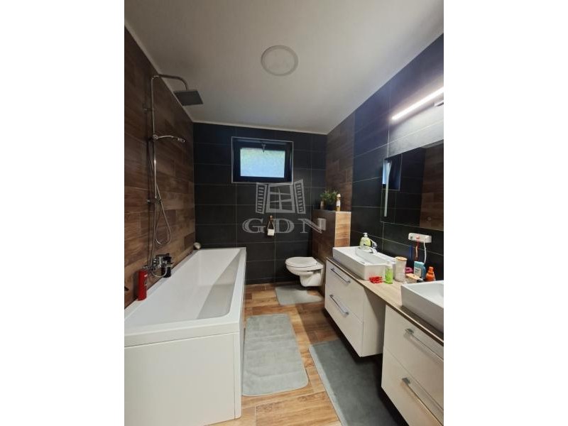 Modern, újszerű családi ház eladó Balatonfűzfő egyik legcsendesebb utcájában – hatalmas, 1273 m²-es telekkel! Balatonfűzfő kedvelt Fűzfőfürdő városrészében, a Balatontól mindössze 1500 méterre, Veszprémtől 15 km-re, az M7-es autópályától pedig kényelmes, 20 perces autóútra található ez a modern technológiával épült, lapostetős családi ház. A 160 m² hasznos alapterületű otthon kiváló elrendezéssel és tágas terekkel várja új tulajdonosát: - 5 hálószoba - Amerikai konyhás nappali és étkező - 2 fürdőszoba + WC, valamint külön mellékhelyiség - Gardrób, háztartási helyiség, kamra - 45 m² nyitott és további 15 m² fedett terasz a kertre néző kilátással A 1273 m²-es, gondosan ápolt kert igazi éke az ingatlannak: - Csodás, dús növényállomány - Minőségi, gondozott gyep - Praktikus fa tároló Műszaki tartalom – minőség minden részletében: - Thermo-block 35 falazat - Thermo-block födém + 15 cm szórt PUR szigetelés - Gázkazán, padlófűtés - Klíma - 6 légkamrás műanyag nyílászárók - Elektromos kapu - Automata öntözőrendszer - 2 állásos fedett autóbeálló Ez az ingatlan ideális választás mindazoknak, akik modern, energiatakarékos és azonnal költözhető otthont keresnek nagy telekkel és harmonikus, zöld környezettel a Balaton közelében. Amennyiben a veszprémi GDN Ingatlaniroda által kínált modern és igényes családi ház, vagy bármely, a kínálatunkban található ingatlan felkeltette érdeklődését, forduljon hozzám bizalommal! Ingatlanirodánk díjmentes, bank semleges hitelügyintézéssel, illetve ügyvédi tanácsadással is áll Ügyfeleink rendelkezésére!