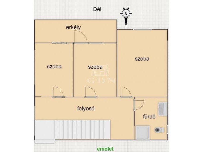 - Az emeleten 3 szoba, erkély és egy fürdőszoba, a padlástérben még egy további szoba és egy illemhelyiség került kialakításra.