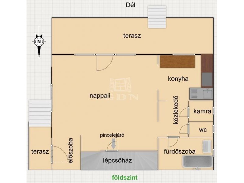 - A földszinten egy tágas, napfényes, amerikai konyhás nappaliból léphetünk ki a 20 négyzetméteres teraszra.