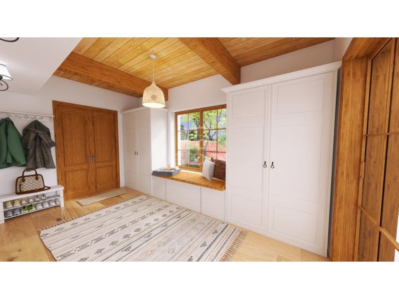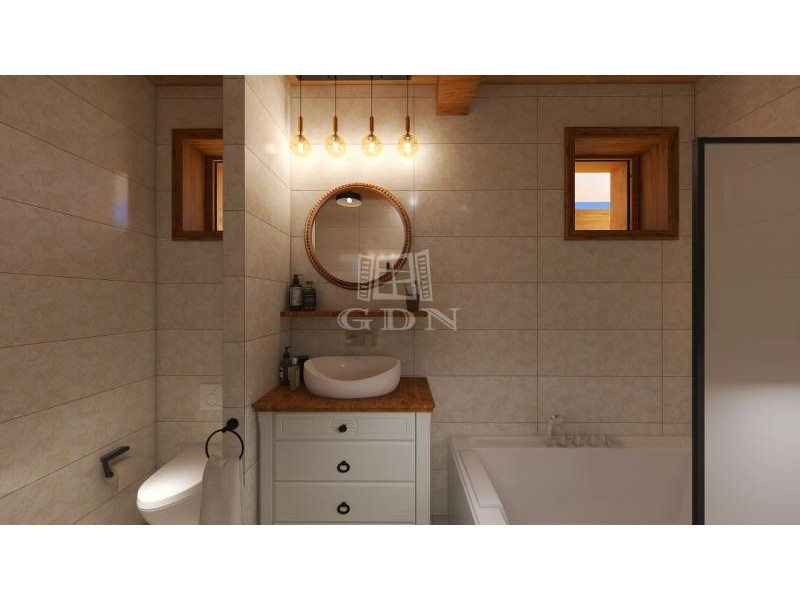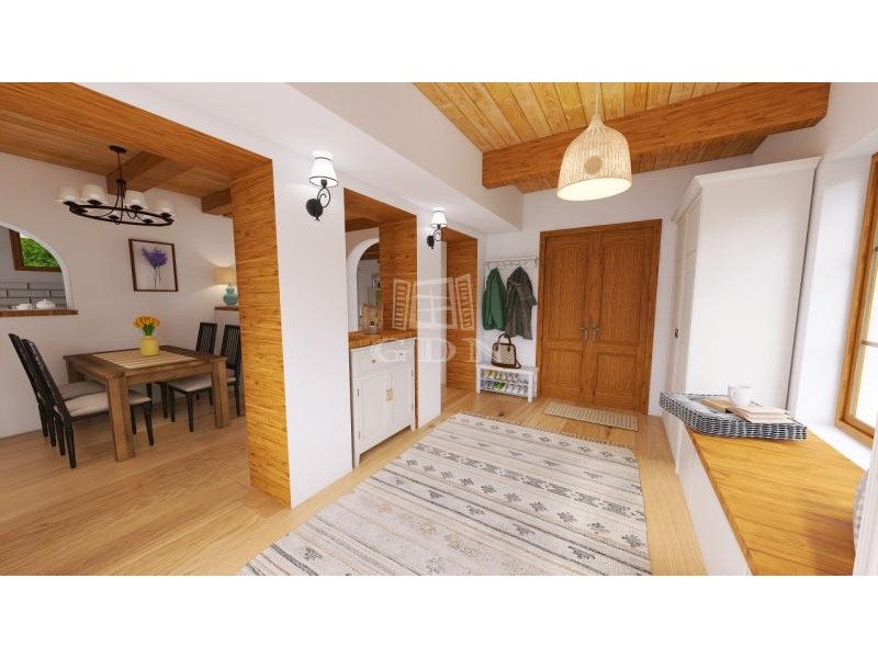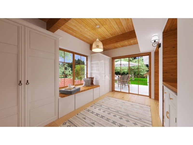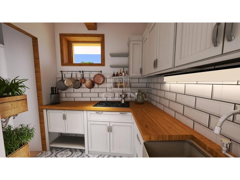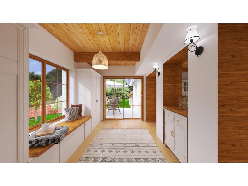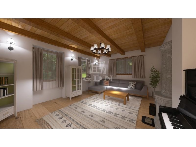 A lakrész egy hangulatos teraszból, utcafronti nagy nappaliból, étkezőből, konyhából, tágas hálószobából és fürdőszobából áll. Az eredeti, százéves gerendák gondos felújításon estek át, megőrizve a ház autentikus báját.