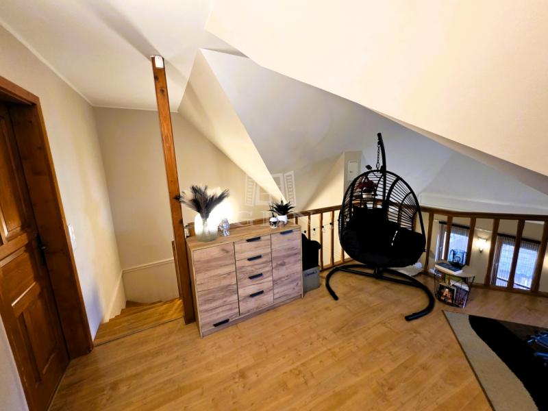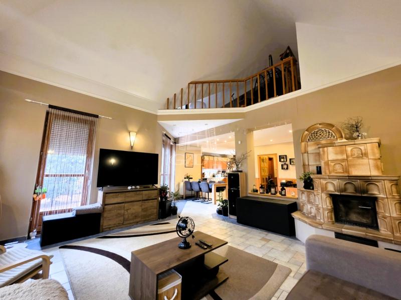 Nagy, galériás nappali – melynek éke a hangulatos cserépkályha