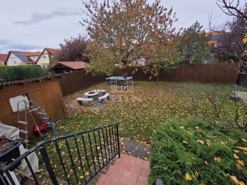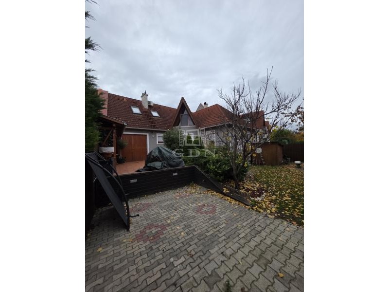 A 439 m²-es, szépen karbantartott és parkosított kert igazi nyugalomsziget. A telek hátsó részén automata locsolórendszer működik, a ház előtti részen pedig térkövezett gépkocsibeálló biztosít kényelmes parkolást akár több autó számára is, a házhoz tartozik továbbá egy tágas, kb. 30 m²-es garázs.