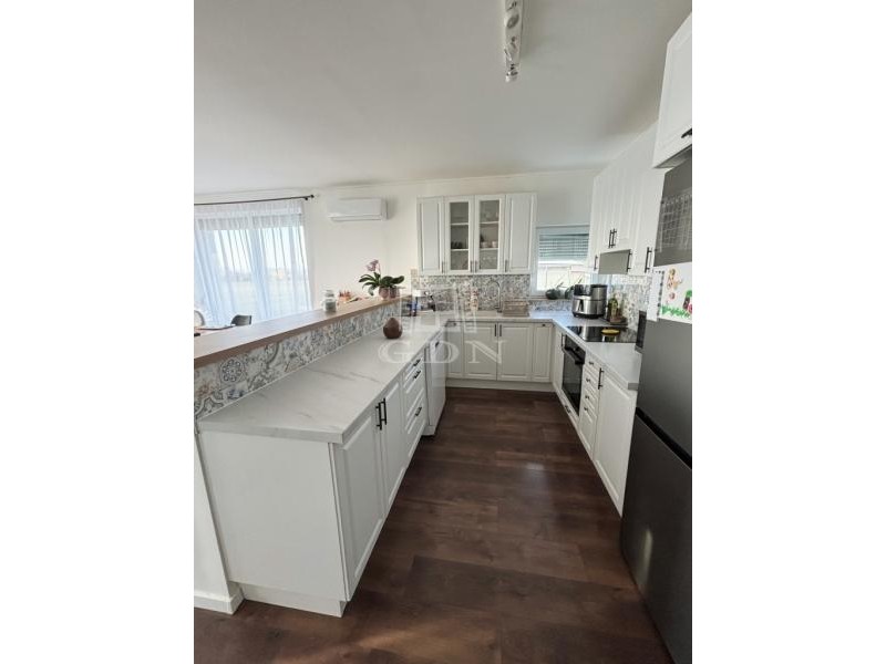 Modern, alacsony rezsijű családi ház panorámával eladó Vilonyán! Vilonya csupán 10 percre a Balatontól! - Vilonya csendes, új építésű részén eladó egy nettó 125 m²-es, egy szintes, újszerű családi ház, amely ideális választás azoknak, akik modern otthont keresnek természetközeli, nyugodt környezetben, mégis kiváló elérhetőséggel! - Az ingatlan 2022-ben épült, 1001 m²-es telken, délkeleti tájolással, gyönyörű panorámás kilátással. - A Balaton mindössze 10 km-re, Veszprém 15 km-re, az M7-es autópálya pedig kb. 20 percre található. Főbb jellemzők: - 125 m² lakótér - Amerikai konyhás nappali + 4 külön nyíló szoba - 2 fürdőszoba, WC külön és egyben is - 35 m²-es terasz - 36 m²-es, 2 állásos garázs elektromos kapuval (az árban benne van) - 150 m² térkövezett autóbeálló és járda Azonnal költözhető! Műszaki tartalom: - Ytong falazat (25 cm) + 15 cm grafitos hőszigetelés - 30 cm födémszigetelés, 15 cm aljzatszigetelés - Minőségi nyílászárók elektromos redőnyökkel - Elektromos fűtés, kiegészítve 2 db klímával - Melegvíz-ellátás: Ariston hőszivattyús bojler - Rendkívül alacsony rezsi (kb. 20–30.000 Ft/hó) Környezet és infrastruktúra: - Gyönyörű újépítésű házak között, 10 percre a Balatontól - Aszfaltos úton megközelíthető, nyugodt, falusias környezet. - A településen belül sétatávolságra park, modern játszótér, óvoda, bolt és orvosi rendelő is elérhető. Extra információk: - Előkészített kamera- és riasztórendszer - Elektromos kapu és kerítés jelenleg kb. 60%-os készültségben CSOK Plusz igényelhető! 3%-os támogatott, Otthon Start Program hitelre jogosult! Kinek ideális? - Tökéletes választás családoknak, akik értékelik a modern műszaki megoldásokat, az alacsony fenntartási költséget, valamint a Balaton és Veszprém közelségét, miközben nyugodt, biztonságos környezetben szeretnének élni. Amennyiben a veszprémi GDN Ingatlaniroda által kínált családi ház, vagy bármely, a kínálatunkban található ingatlan felkeltette érdeklődését, forduljon hozzám bizalommal! Ingatlanirodánk díjmentes, banksemleges hitelügyintézéssel, illetve ügyvédi tanácsadással is áll Ügyfeleink rendelkezésére!