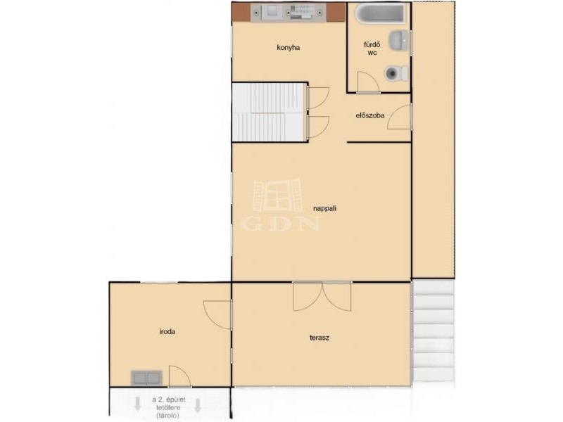 A lakrész felett külön bejáratú irodahelyiség került kialakításra vizesblokkal, tökéletes otthoni munkához vagy vállalkozáshoz.