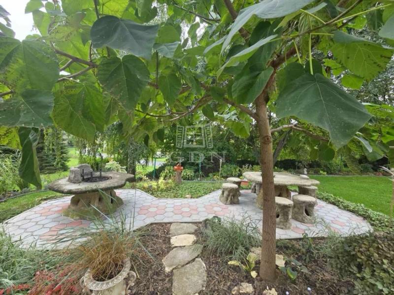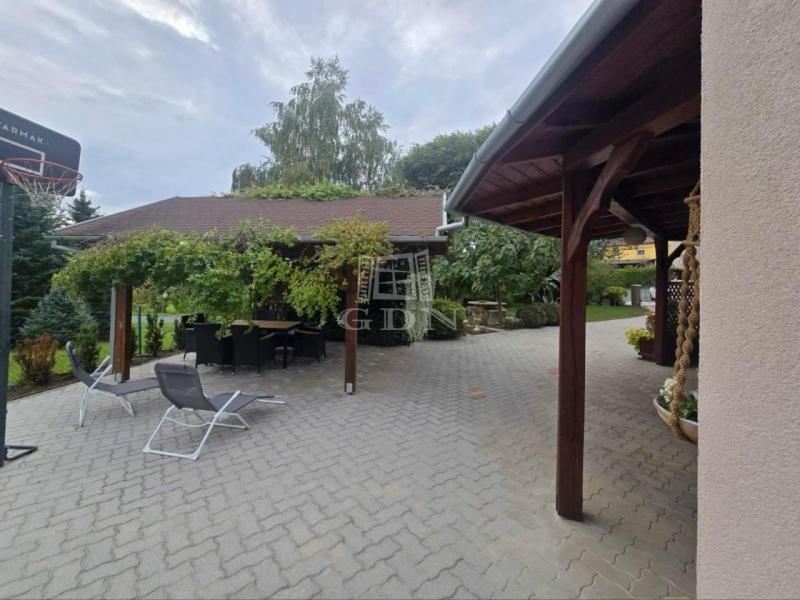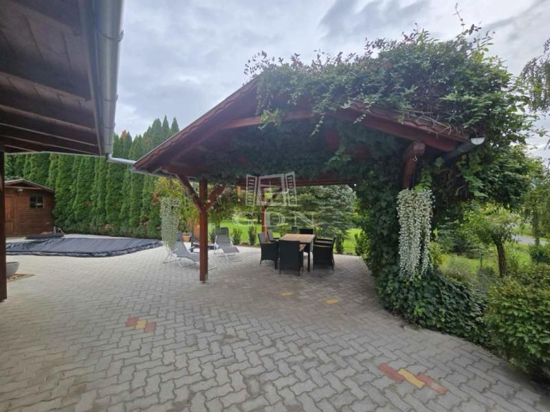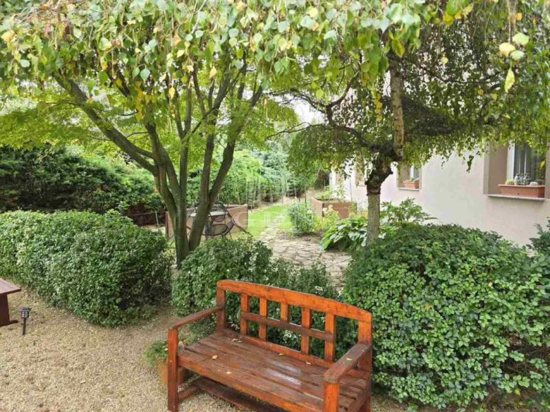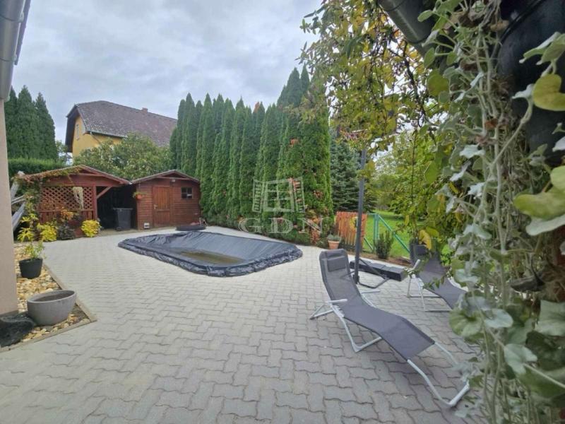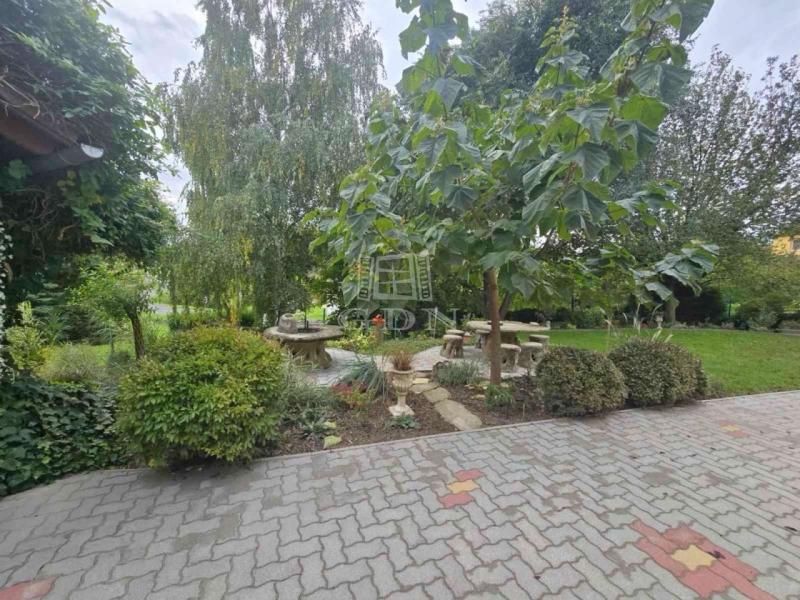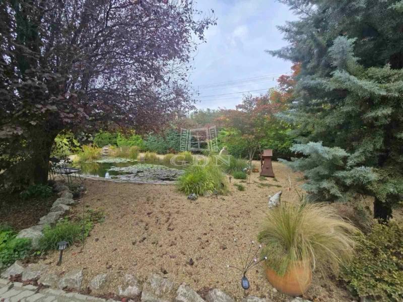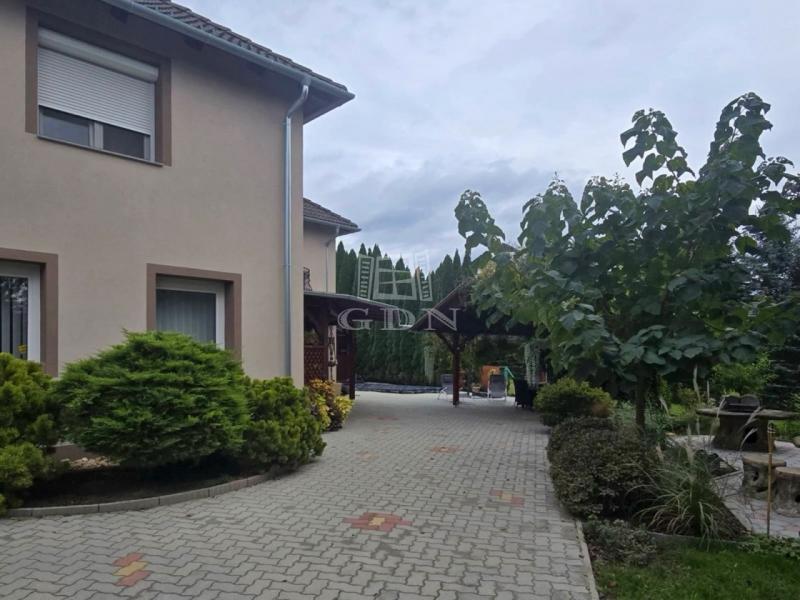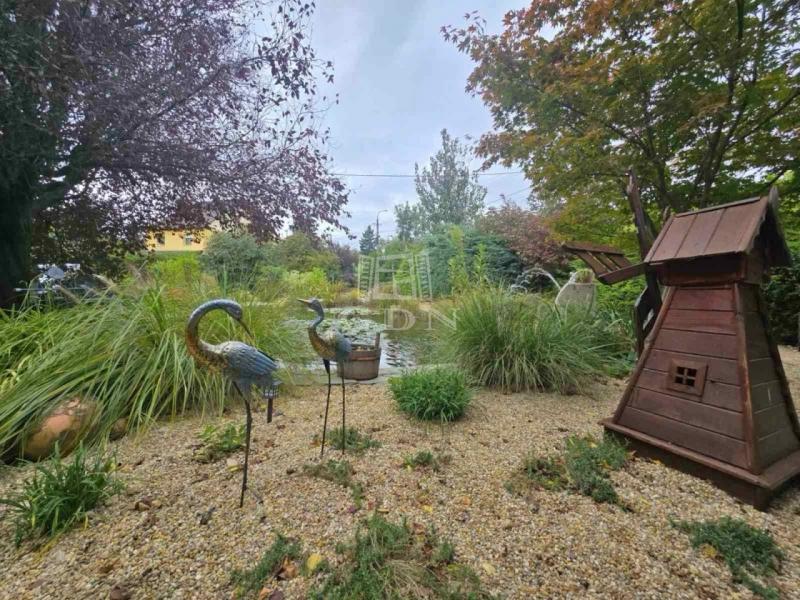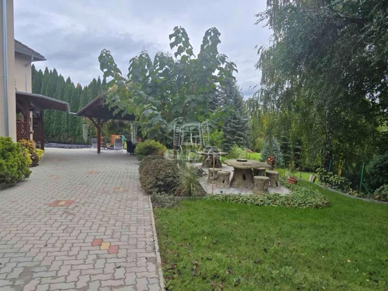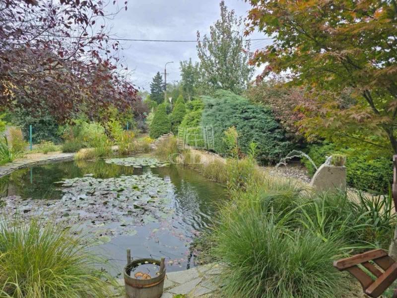 A kert is minden részletében egyediséget sugall: parkosított környezet, csodaszép bokrokkal, növényekkel beültetett terület, térkövezett udvarrészek, gyepszőnyeg, 96 m3-es, saját vizellátással, fúrt kúttal rendelkező halastó és egy 5*2,5 m-es medence kínál békés életteret, rendezett, zöld környezetet az ott lakók számára.