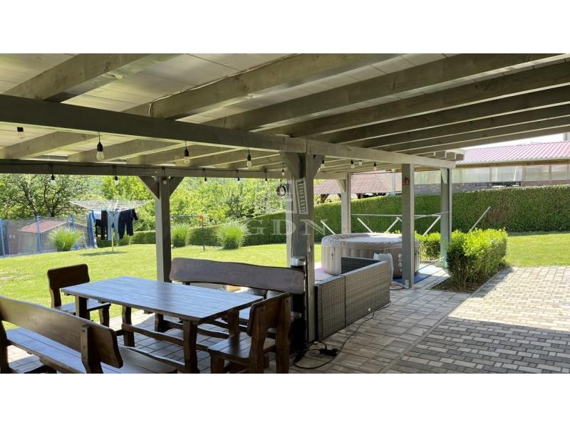 A hab a tortán: egy 50 m²-es fedett terasz, ami tökéletes grillezéshez, szülinapozáshoz vagy csak simán kiülni, nézni a gyönyörű panorámát, kilátással a csodás erdőre.