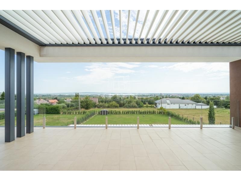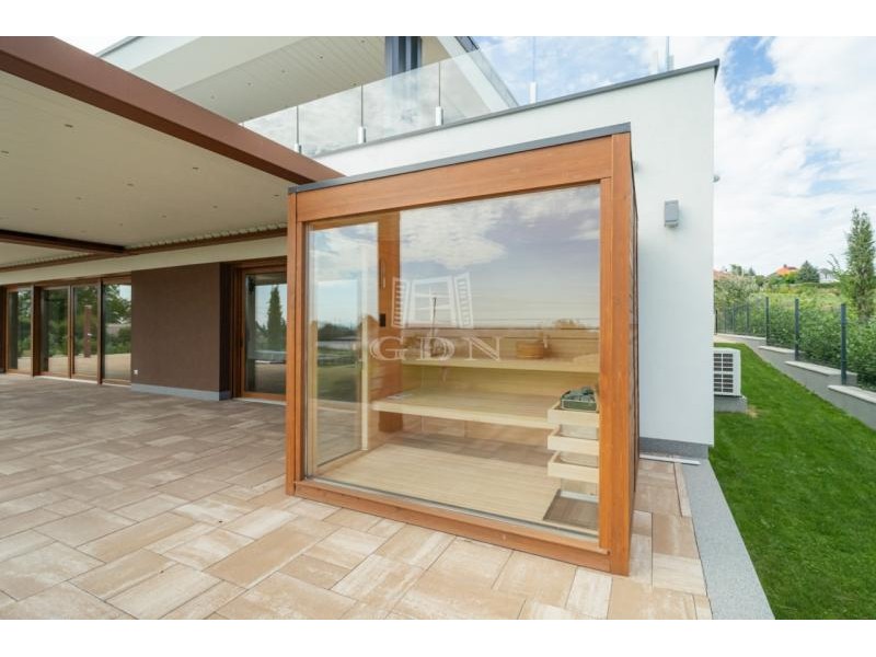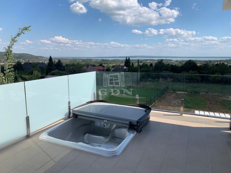 ÉLVEZZE A BALATONI PANORÁMÁT SAJÁT MEDENCÉJÉBŐL A PÁRATLAN FEKVÉSŰ CSERSZEGTOMAJON! Minden igényt kielégítő, ÚJ ÉPÍTÉSŰ, LUXUS ÁLOM OTTHON várja Önt KESZTHELY és HÉVÍZ mellett ezen a dinamikusan fejlődő, külföldiek által is kedvelt és lakott, túrista látványosságokkal teli, mégis nyugodt, páratlan természeti adottságú, remek elhelyezkedésű településen! AZ OTTHON: A 338 nm alapterületű két szintes ház egy 1656 nm-es telken helyezkedik el. Az ingatlan ENERGIATAKARÉKOS, PRÉMIUM ANYAGOKBÓL és a LEGFEJLETTEBB MŰSZAKI TARTALOMMAL épült, MODERN, MINIMALISTA stílusban. HATALMAS, nyitott terek, tágas helyiségek, IMPOZÁNS ÜVEG FELÜLETEK biztosítják a LUXUS életérzést és a csodálatos kilátást a Balatonra és az őt körülölelő tájra a ház minden pontjából! A földszint 170 nm ahol egy hatalmas egylégteres nappali-konyha-étkező, galériás előszoba, főháló gardróbszobával saját fürdő és wc-vel, háztartási helyiség, vendég wc, gépház, 2 beállásos garázs és az 50 nm-es pergolával fedett terasz találhatók. A teraszon található 3,5x6m-es MEDENCE és panorámás üveg falú FINN SZAUNA fokozza a valódi luxus érzést, ami a ház minden apró részletében megmutatkozik. Az emelet 78 nm ahol 2 hálószoba, fürdő+wc+INFRA SZAUNA, dolgozószoba és pergolával árnyékolt 40 nm-es terasz található, ahol egy 3 személyes süllyesztett JAKUZZIBÓL élvezhetik a csodás tóra néző panorámát. MŰSZAKI tartalom : - áram , erős áram , vezetékes víz , szennyvízcsatorna - központi antenna , internet - az épület riasztóval , nyitás érzékelőkkel és kamera rendszerrel felszerelt - 3 rétegű műanyag nyílászárók elektromos alumínium redőnyökkel és szúnyoghálóval - a villamos energia ellátást 15 KW- os NAPELEM rendszer segíti , így az épület energia ellátása szinte teljesen önellátó , energia besorolása A+++ - az ingatlan FŰTÉSE és HŰTÉSE automata HŐSZIVATTYÚVAL, padlófűtéssel és mennyezet hűtéssel van megoldva. A helyiségek hőmérséklete külön is szabályozható. - vízlágyító - Hörmann garázskapu, ELEKTROMOS AUTÓ TÖLTÉSI lehetőséggel - Umbroll típusú elektromos lamellás pergola - Beépített konyha felszereltsége: Electrolux márkájú mikrohullámú sütő, indukciós főzőlap, sűtő és automata kávéfőző és Goranje Side by Side hűtőszekrény, valamint Cata páraelszívó. - 20 m3-es esővíz gyűjtő öntözőrendszerrel - padlóburkolatok : kerámia , laminált parketta - az ingatlan kerítéssel , részben sövénnyel körbekerített és elektromos nyílókapuval ellátott Rendkívül JÓ INFRASTRUKTÚRA: minden, ami a mindennapokhoz szükséges, iskola, óvoda, orvosi rendelő, gyógyszertár, bevásárlási és szórakozási-sportolási lehetőségek tárháza egyaránt a közelben. Várom megtisztelő hívását. ID:388057