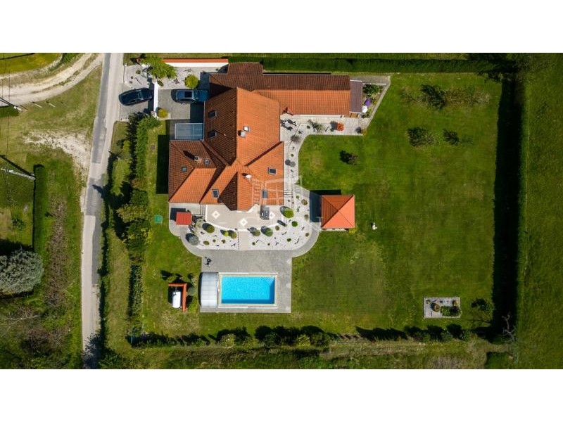 Az ingatlan egy 2347 m²-es telken helyezkedik el, ahol található még egy fedett szabadtéri medence, egy garázs, egy nagyobb műhely és egy pavilon is.