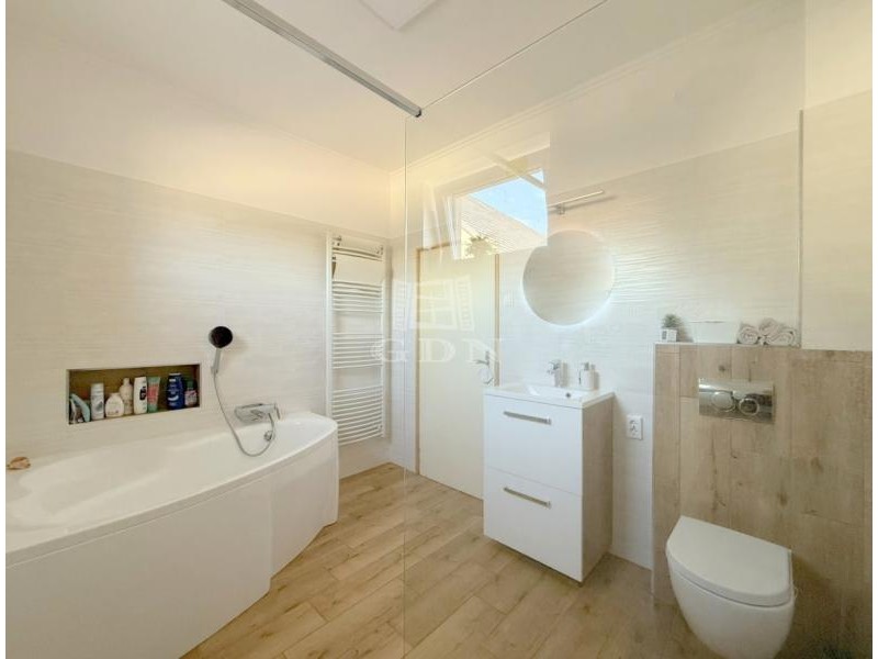 A fürdő sem maradt ki a sorból, hiszen 3 éve Ravak szaniterek és magas kvalitású burkolatok jellemzik.