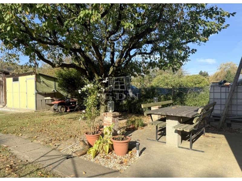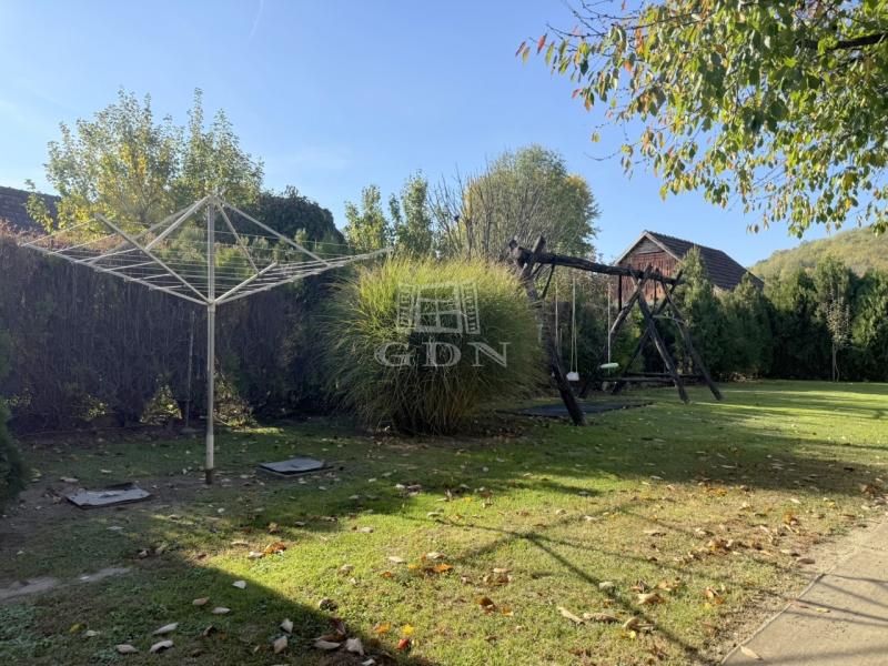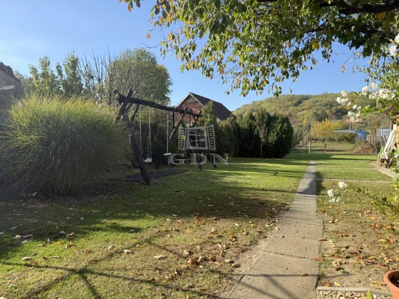 A terület cca. 800 m2, melyen szépen elkülönülnek a pihenésre és játékra szolgáló részek a veteményes és gyümölcsfák birtokától.