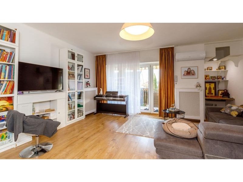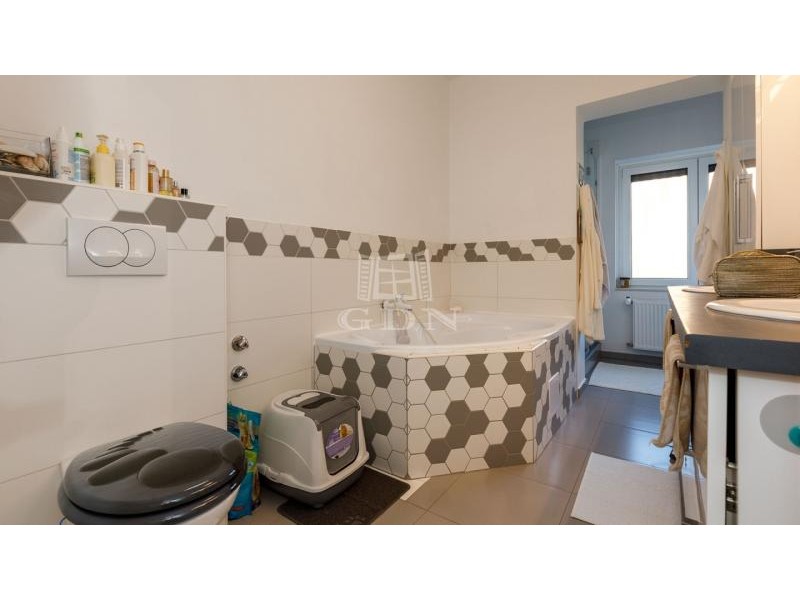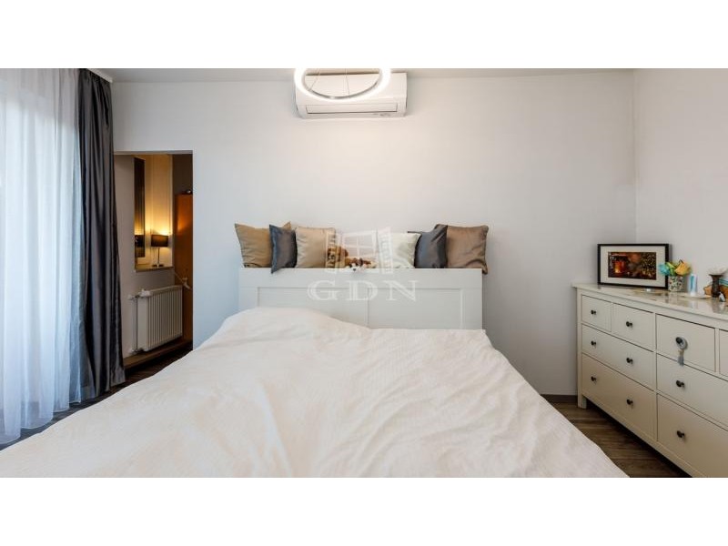 A hőszigetelést műanyag nyílászárók biztosítják, redőnyökkel és szúnyoghálókkal. Hűtő-fűtő klímaberendezés és a gázkazános fűtés pedig a megfelelő hőmérsékletet garantálja.