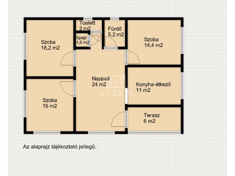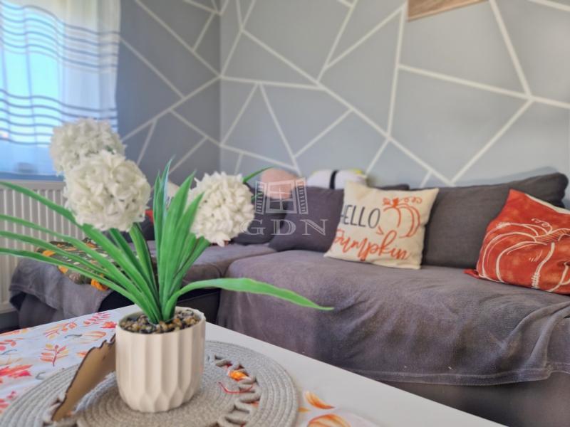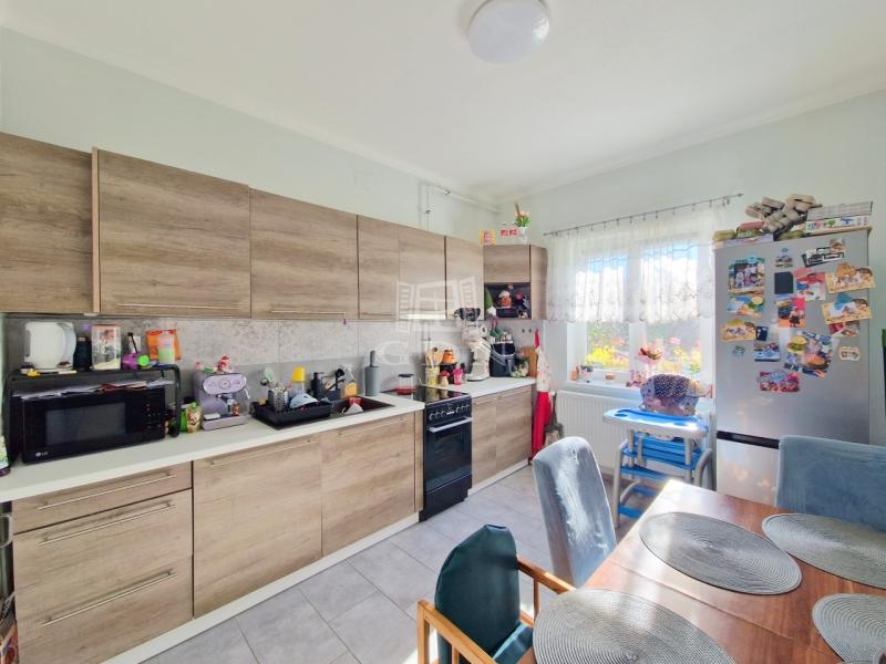A benapozott otthon 94 m2 - en (+ 6 m2 terasz) tágas terek formájában ad otthont 3 különnyíló szobának, egy tágas konyha - étkezőnek, egy nappalinak, egy spejznek, egy külön helyiségben található toalettnek, valamint egy fürdőkáddal felszerelt fürdőnek.