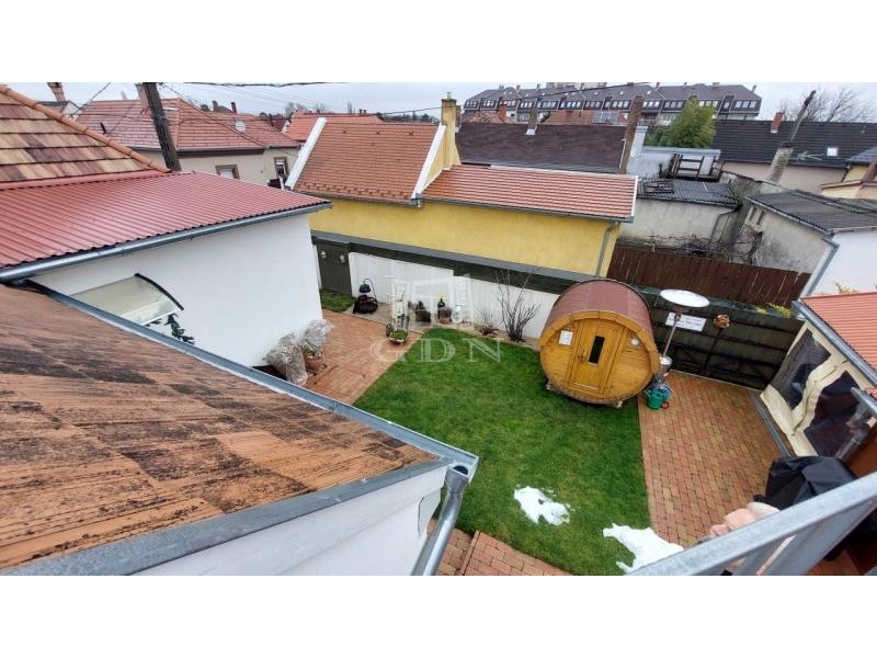 A gondosan kialakított udvaron autóbeálló, tároló, kerti lak és egy külön vendéglakás is helyet kapott (14 m2), mely saját fürdővel és teakonyhával rendelkezik.