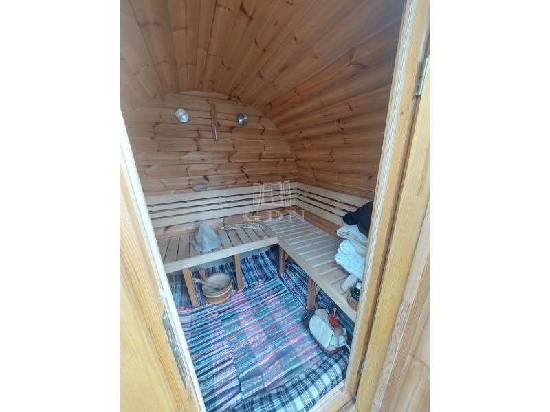 A kis kertben igazi exkluzív élményt kínál egy alig pár éves, teljesen felszerelt szauna, amely a vételár részét képezi, mint ahogyan a házban lévő klíma és a beépített, gépesített konyhabútor is!!!