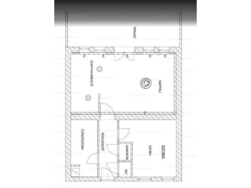 Az ingatlan belső elrendezése tudatos tervezés eredménye. Az előtérből külön WC, egy kis gardrób nyílik, valamint egy igényesen kialakított fürdőszoba. A hálószobában egyedi, beépített gardrób gondoskodik a praktikus és esztétikus tárolásról. A lakás központi tere a tágas, nagy belmagasságú amerikai konyhás nappali–étkező, amely világos, jól bútorozható.