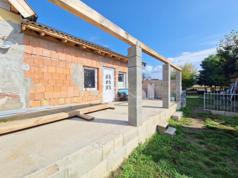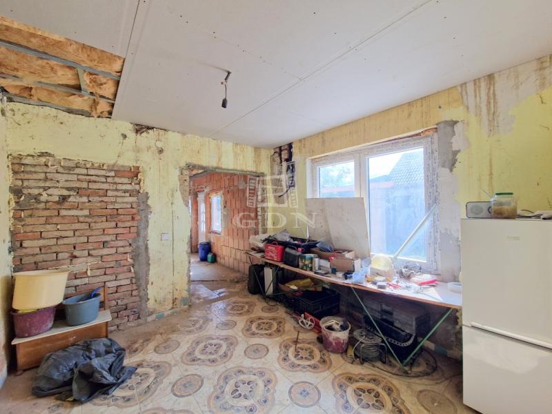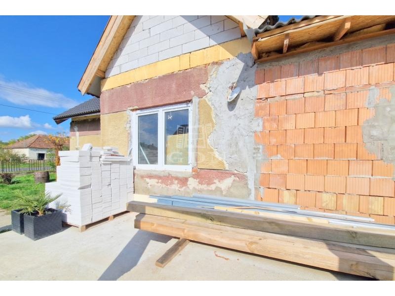 AZONNAL BIRTOKBA VEHETŐ, felújítás alatt álló, 75 m2-es lakóterületű családi ház eladó, kúttal, melléképülettel, kezelhető méretű területen! IRÁNYÁRA: 14.500.000 Ft. Zalaegerszeg, Nagykanizsa, Zalakaros és a Balatontól is mindössze fél órás autóútra elérhető Kilimán településen vált eladóvá egy 105 m2 alapterületű családi ház, felújítás alatt lévő állapotban. AZ INGATLAN: - 105 m2 alapterületű (75 m2 lakótér, +30 m2 terasz), - beton és tégla alapra épült, szerkezete vegyes falazatú, vályog és tégla, - fa födémmel és BETONKOSZORÚVAL rendelkezik, tetejének fedése cserép, - nyílászárói 2 rétegű műanyag nyílászárók, - közművek: víz, szennyvíz és áram az ingatlanban, gáz a telek előtt található. FELÚJÍTÁSOK: - A teljes tető megújult, ideértve a lécezést, fóliázását és cserepek cseréjét, - megvalósult a hozzáépítés téglából, - a nyílászárók cseréje, - az áramhálózat részleges kiépítése, H tarifa bekötése, - valamint részben a víz és szennyvízcsövek cseréje. Figyelem, a tulajdonos vállalja a tető befejezését ( a cserepek felrakását ahol még nem valósult meg), illetve a jelenleg homok aljzattal rendelkező szoba lebetonozását is, továbbà minden, a felújításhoz szükséges megmaradt építőanyagot is az ingatlanban hagyja. A 2098 m2 es terület több részre lett kertelve, kialakításra került egy kutyakennel is, megtalálható mellette egy cca. 40 m2- es tároló, továbbá kerti csap és ásott kút is rendelkezésünkre áll. Kilimán csendes, nyugodt település, a tőle 4 km-re elérhető szomszédos Gelse településen minden szolgáltatás elérhető, pl: orvosi rendelő, bolt, gyógyszertár, állatorvos, iskola és óvoda. (Kilimánból falubusz hordja át a gyermekeket iskolába, óvodába.) Ajánlom azoknak: - Akik csendes, nyugodt településen szeretnének élni, kedves szomszédok közelségében, - akik nem riadnak vissza a befejezésre váró felújítások munkálataitól, - akiknek fontos akár a Balaton, Zalaegerszeg vagy épp Nagykanizsa közelsége. Irányára: 14.500.000 Ft.