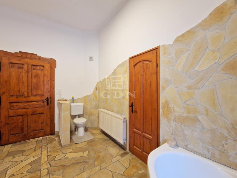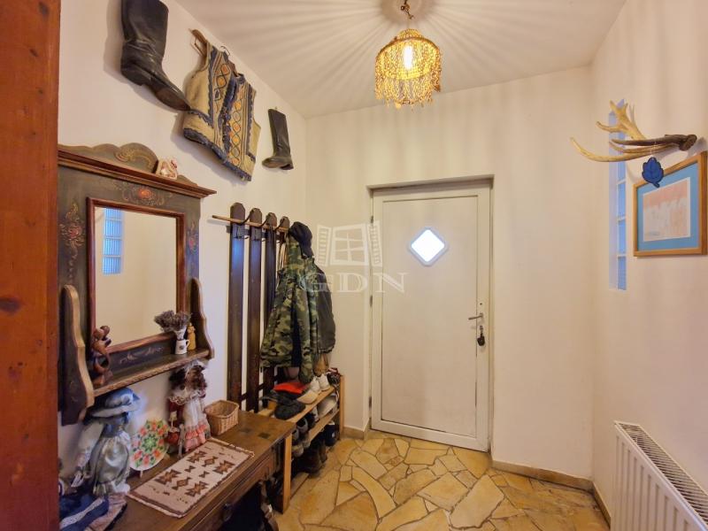 Az otthon helyet ad egy előtérnek, egy közlekedőnek, egy konyha-étkező együttesnek, az onnan nyíló spejznek, a mosókonyhaként használt pince lejárónak, galériás nappalinak, 2 hálónak, egy zuhanyzóval, sarokkáddal és toalettel felszerelt fürdőnek, valamint plusz egy külön helyiségben található toalettnek.