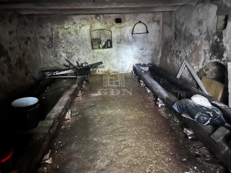 A gazdasági épület földszintje kb.1967-ben épült kisméretű téglából. A földszinten egy hosszú tornácról tudunk bemenne a 35 m2, 3 helyiségből álló részbe, ahol víz, villany már van , fűtését pedig egy vaskandallóval vagy cserépkályhával azonnal megoldhatóvá lehet tenni.