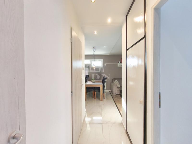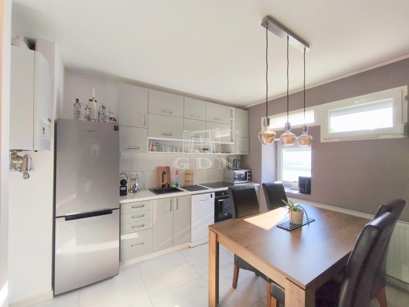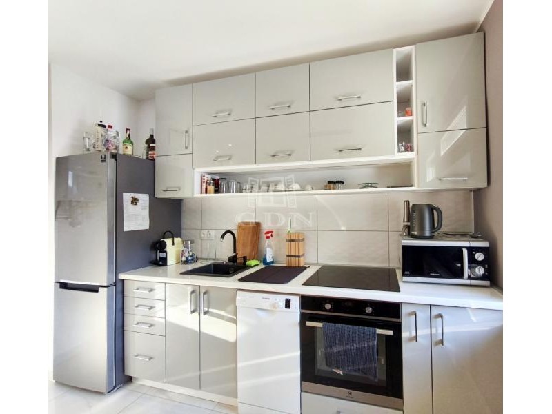 A modern, új konyha esztétikus és praktikus kialakítású, a szobákban laminált burkolat, míg a közlekedőkben és a vizes helyiségekben igényes járólap található.