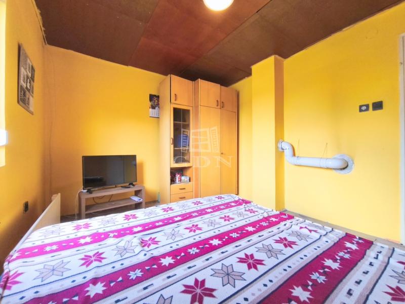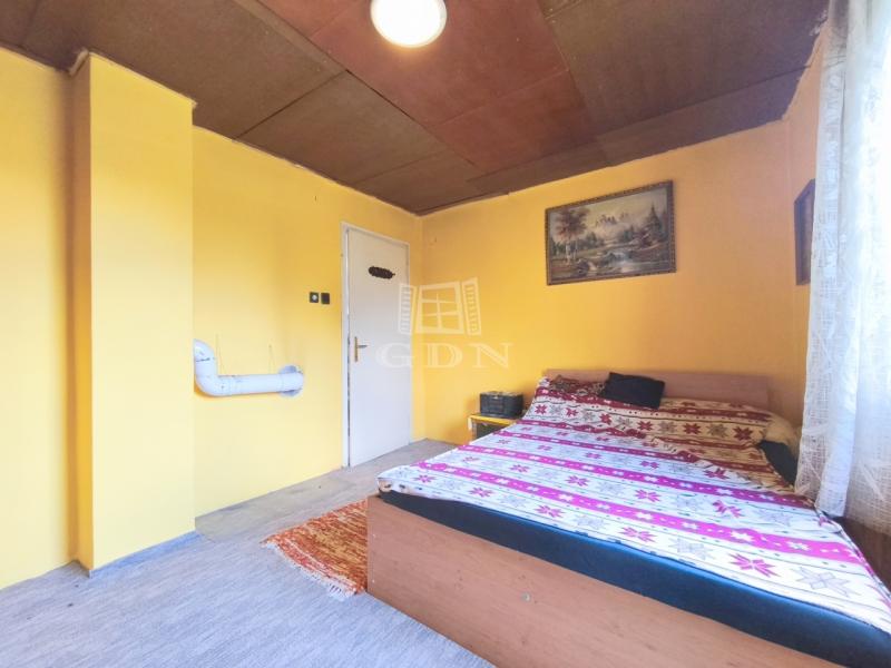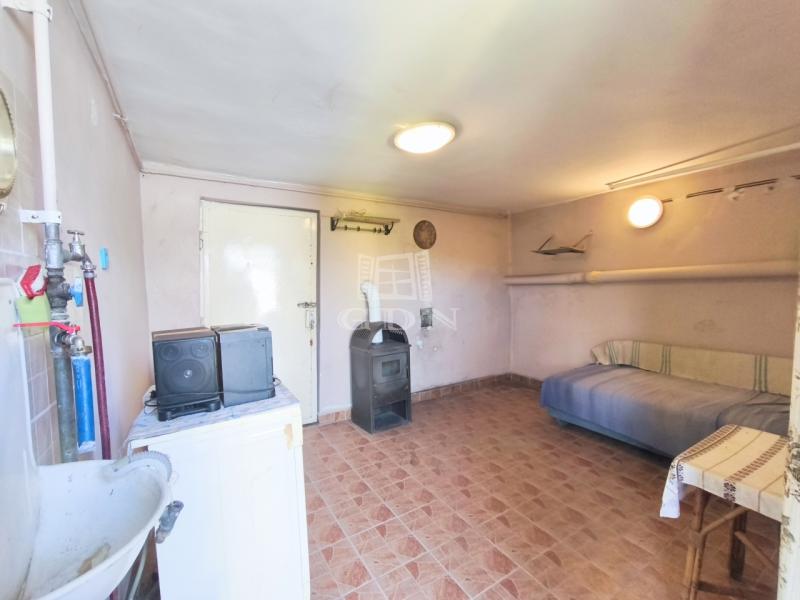 A tégla szerkezetű, kétszintes ház ( NINCS a két szint között belső lépcső ) szintenként körülbelül 30 m² alapterületű. A felső szint már jelenlegi állapotában is lakható, ahol egy külön nyíló hálószoba, egy különálló konyha, valamint egy fürdőszoba és WC egy helyiségben került kialakításra, így akár azonnali használatra is alkalmas. Az alsó szint további lehetőségeket rejt magában, legyen szó tárolásról, műhely kialakításáról vagy akár a lakótér bővítéséről.