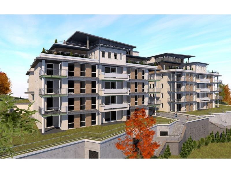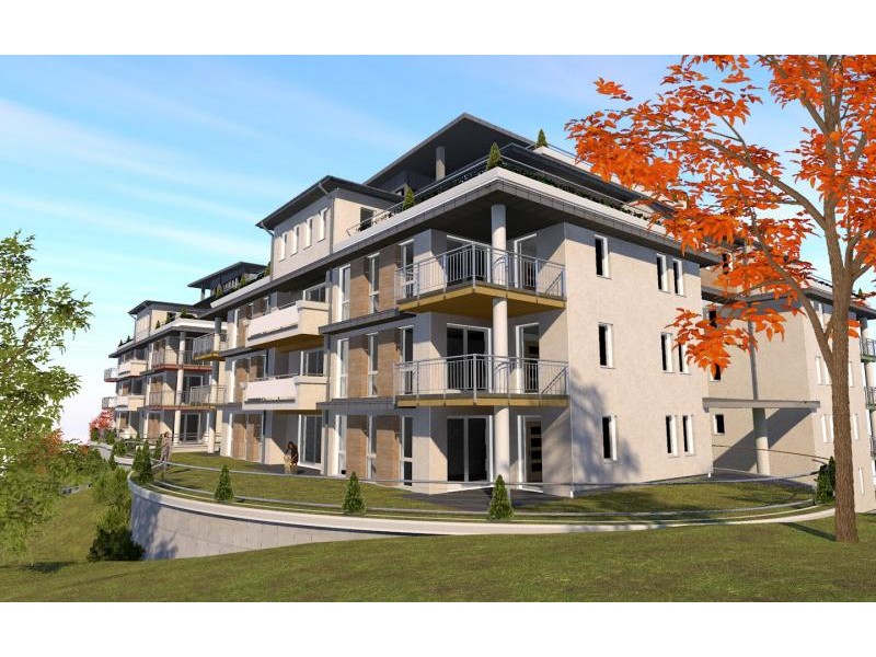 Az épület egyedi tervezésével különleges látványt nyújt. Négy tömbből áll, melyet egy darab központosan elhelyezkedő, a szokásosnál nagyobb és nagyvonalúbb lépcsőház szolgál ki nagyméretű lifttel. Mind a lépcsőházból, mind a liftből biztosított a gyönyörű kilátás. A tömböket különleges építészeti térélményt nyújtó függőfolyosók kötik össze. A földszinti lakásokhoz saját kertkapcsolat tartozik – természetes kialakítással vagy exkluzív zöldtetőn létrehozva. A felsőbb szinteken különböző méretű és elrendezésű lakások kapnak helyet, mindegyikhez jól kihasználható terasz kapcsolódik. Az otthonok központi eleme a tágas nappali–étkező élettér, amelyet nagy üvegfelületek tesznek világossá, miközben közvetlen kapcsolatot teremtenek a környező természettel.