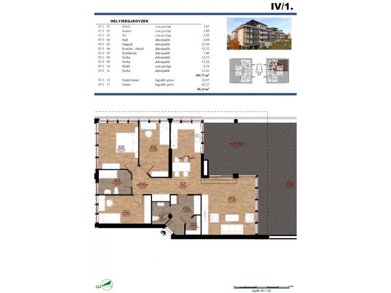 Alapterülete: 109,71 nm, melyhez 68,14 nm terasz tartozik