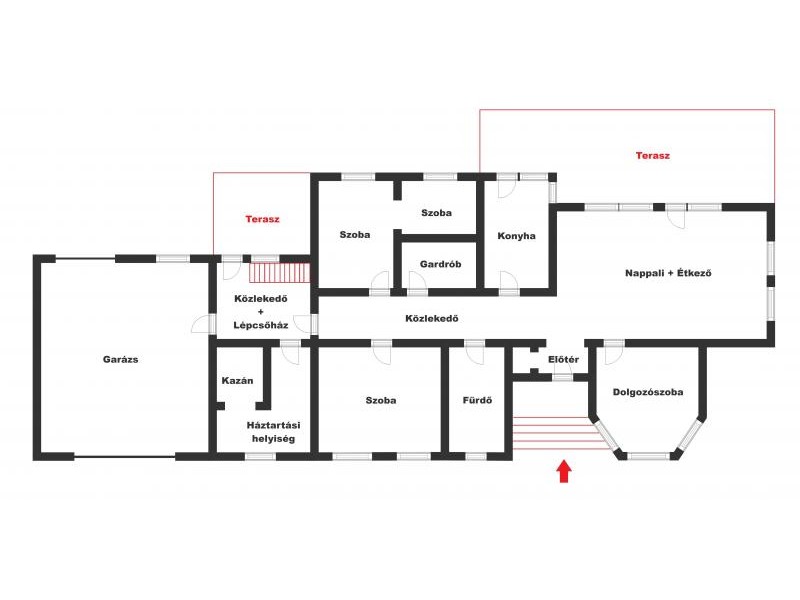 - hátsó bejárat mellet lévő fedett teraszon akár kültéri konyha is kialakítható