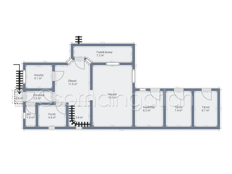 HELYISÉGEK (teljes alapterület: 114 m2)