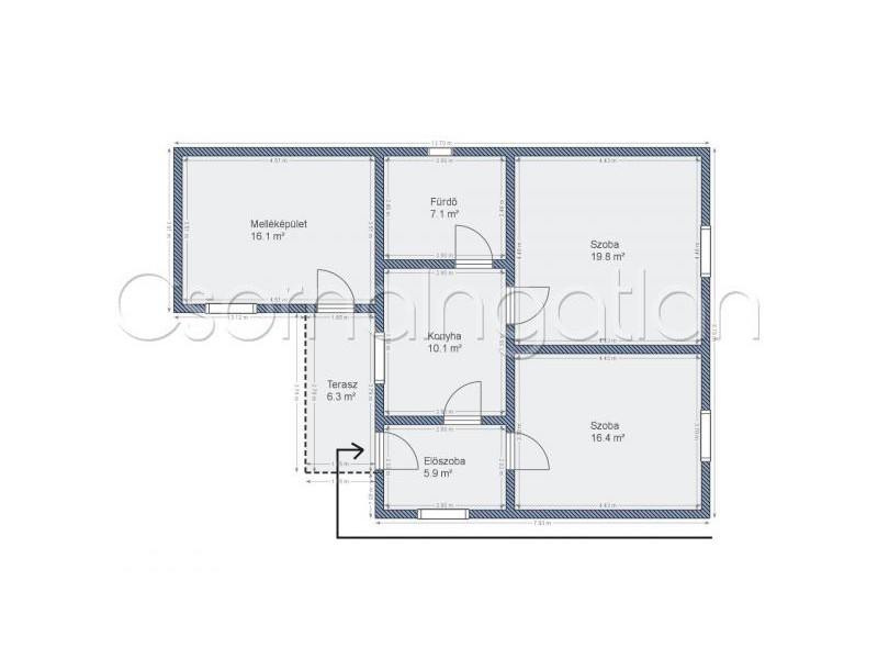 - víz, villany, csatorna a házban, gázcsonk az utcában található