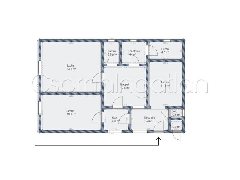 - hagyományos nyílászárók, utcafronton redőnnyel felszerelve