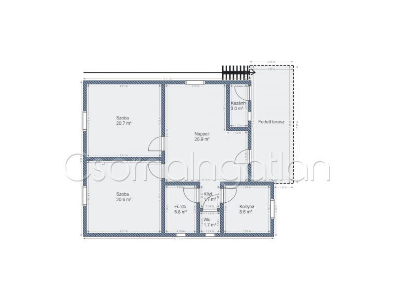 - fedett terasz (17 m2)