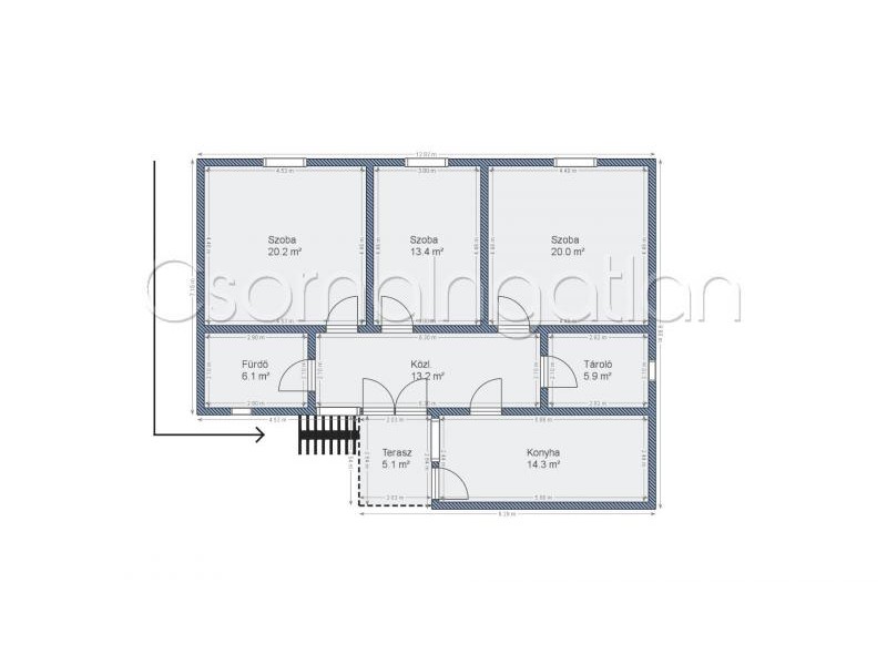 93 m2-es tégla építésű családi ház 1485 m2-es telken eladó
