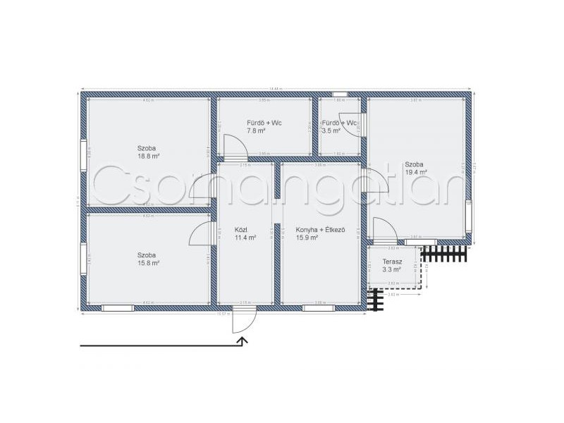 Szanyban 90 m2-es felújított duplakomfortos családi ház 900 m2-es telken eladó.